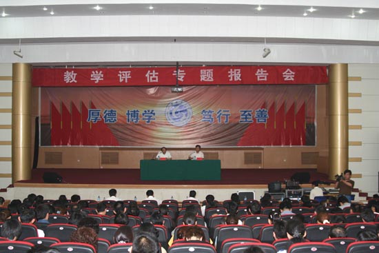 报告会由党委副书记、副校长张新义主持。他要求各单位、各部门要认真领会报告内容,结合各自实际进行深入研讨,切实做好我校的评建工作。他还就近期各单位的评建工作提出了要求:一、学校近期将对责任单位的评建情况进行阶段检查,各责任单位要按照所分管的指标体系,将相关材料准备好,写好观测点综述材料,关键要结合本职工作对所负责的观测点进行全面建设。二、根据新上专业的评估反馈意见,各学院要做好新上专业的建设和材料整理工作;三、按照学校的评建计划,到本学期暑假结束,要完成前两年评建材料的收集和整理工作,各部门要根据这一时间和要求,对本部门的工作进行及早部署,合理安排期末及暑假的评建工作;四、学校将于下半年对各院部进行单项检查和教学评估,评估结果和两年一轮的教学先进院部评选挂钩。各院部要做好自评、自查工作,对课堂教学、毕业设计、试卷、实验实践教学等关键环节,要抓住重点、早布置、早落实,全面提高我校的教育教学质量。