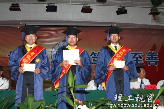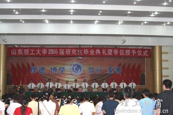 毕业典礼在庄严的国歌声中拉开序幕。谭秀森首先宣读了《山东理工大学关于表彰2006年度优秀毕业生的通报》。随后,校领导为优秀毕业生颁发了获奖证书。