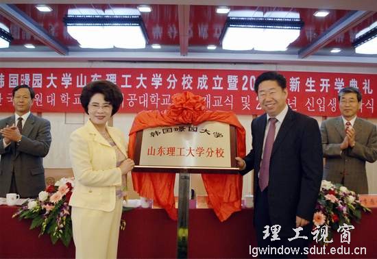 9月13日上午,韩国暻园大学山东理工大学分校揭牌仪式暨新生开学典礼在杏园二楼会议室举行。我校领导范跃进、张新义、王学真,暻园大学校长李吉女、副校长李愚钟以及双方学校的有关职能部门和学院的负责人参加了仪式。