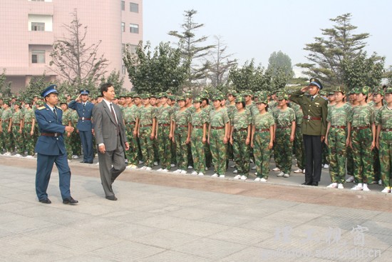 庄严的授校旗仪式之后,在军训团团长、94326部队教导员刘鹏的陪同下,党委副书记、副校长张新义兴致勃勃地检阅了2006级新生军训团。教官和参训新生们以昂扬的斗志、饱满的精神接受检阅。随后,军训方队在校旗的带领下,以分列式队形依次走过主席台接受学校领导和部队首长的检阅,整齐的步伐、威武的军姿、响亮的口号充分展示了军训的成果和新时代大学生的风采。