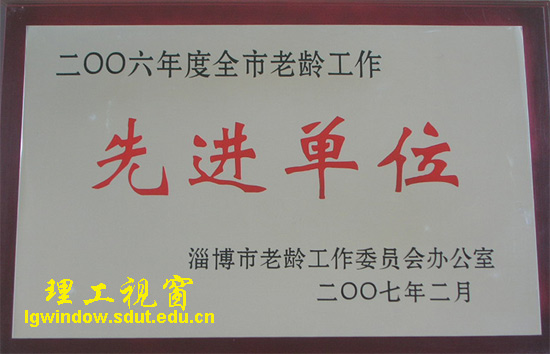 本站讯 近日,我校离退休工作处在淄博市2006年度老龄工作考评中获得“2006年度老龄工作先进单位”荣誉称号。