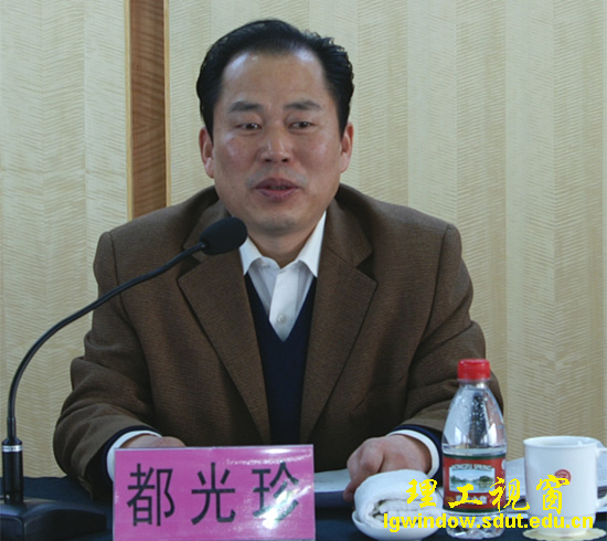 校党委书记都光珍发表讲话,他首先代表学校党委、行政向后勤干部、职工代表及后勤岗位的全体员工表示感谢,感谢大家为学校的建设与发展做出的贡献。他指出,学校后勤工作,在后勤干部、职工的不懈努力下,取得了很大的成绩,投资多元化、管理契约化、运行企业化的机制越来越完善,运行效果良好;精益化管理逐步推进,成效明显;制度建设得到加强,工作规范化程度不断提高;服务形式内容不断创新,服务质量有了新的提高;不断开拓校外市场,自主发展的能力进一步增强;树立了良好的社会形象,为学校争得了荣誉。这些成绩的取得,关键在于我们拥有一支素质较高的后勤职工队伍。这支队伍具有良好的精神状态、先进的工作理念、较强的服务意识和无私的奉献精神。他强调,2007年,后勤工作面临着更大的挑战。教学评估工作、学位点建设、学校三期工程,这三件大事的顺利完成,赋予了后勤工作更大的责任、更重的任务。如何增收节支、建设节约型校园?如何在迎评创优中促进工作开展、提高服务水平?如何提高运行效益、调动员工的积极性等,都需要深入研究。希望通过召开本次会议,总结经验,理清思路,抓好落实,为学校2007年各项任务,尤其是学校三件大事的圆满实现做出更大的贡献。