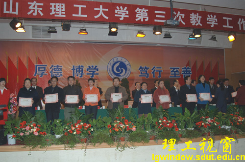 党委副书记张宗新宣读了对国家级精品课程、全国大学生竞赛活动优秀指导教师、省教学名师、校教学名师、教学优秀奖、教学工作先进院(部)等的表彰决定和表彰名单。会上,对获奖的先进集体和个人进行了表彰奖励,教育部、省教育厅和我校领导为获奖人员颁奖。