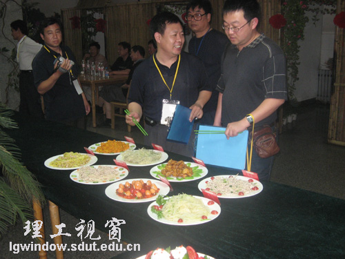 本站讯 为加快我校高水平饮食工作的建设步伐,提高员工的厨艺水平,饮食服务中心于6月16日在西校区第三食堂举行了“动感地带”杯烹饪大赛。5所著名高校的专家领导接受我校的邀请前来观摩比赛,指导工作。中国海洋大学后勤集团副总经理、教授、省伙专会理事长、国家级考评员庄肃静担任本次大赛的主任评委;山东大学饮食中心书记、副教授徐建,青岛大学后勤管理处副处长、饮食中心主任、省伙专会副理事长刘晓阳,山东农业大学饮食中心主任、副教授、泰安市烹饪饭店协会副会长姜寿庆等与我校的相关领导、学生代表共同组成了此次大赛的评委团。