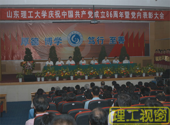本站讯 6月29日下午,山东理工大学庆祝中国共产党成立86周年暨党内表彰大会在3号教学楼报告厅隆重举行,校领导都光珍、张宗新、贺连春、张元利、谭秀森、杜瑞成、张宇声、姚德出席大会。会议由党委副书记张宗新主持。
