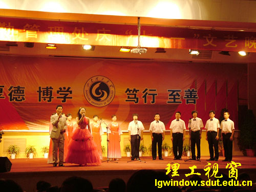 本站讯 6月29日晚7:30,由后勤党总支主办,后勤工会承办的后勤管理处庆“七•一”文艺晚会在3号教学楼报告厅举行。校党委副书记张宗新,校党委常委、副校长贺连春以及能源管理中心、饮食服务中心、国际交流中心、公寓管理中心、物业管理中心、幼教中心等单位相关人员参加了文艺晚会。
