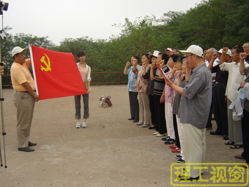本站讯 为纪念建党86周年。7月2日,离退休工作处三科党支部组织近40名党员到山东省爱国主义教育基地---黑铁山进行了“缅怀抗日先烈,重温入党誓词”活动。