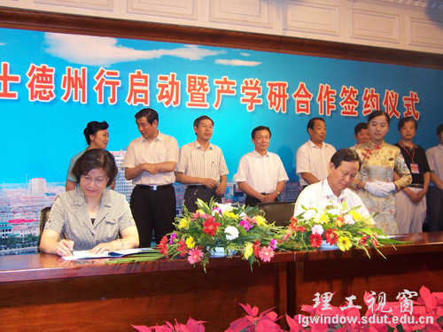 本站讯 2007年7月11日我校应德州市人民政府邀请参加了德州市举行的2007两院院士德州行暨产学研合作恳谈会。我校党委副书记、副校长张新义及科技处负责人参加了会议。