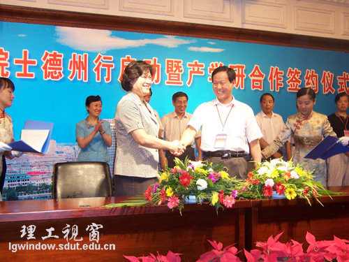 12名中国科学院、中国工程院的院士及部分高校专家教授会聚德州,为全面贯彻落实科学发展观,共同推动德州市经济发展与社会进步,共商合作发展大计。恳谈会上,我校与德州市人民政府就在城市发展规划、高等教育、高新技术合作和产品研发等方面展开合作并建立长期稳定的合作关系达成协议。