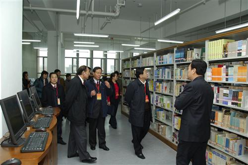 10时20分,专家组一行来到图书馆,听取了图书馆负责人对图书馆情况的介绍,考察了各科书库、阅览室、电子阅览区,翻阅了部分图书,察看了学生的学习情况。