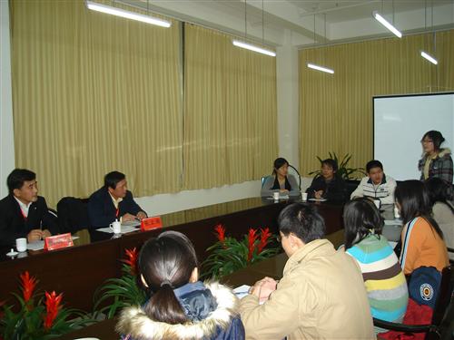 12月11日19时30分,教育部本科教学工作水平评估专家组成员张明旭教授、张卫国教授在副校长姚德的陪同下在图书馆5楼会议室对学生进行了英语口语能力测试,被随机抽取的来自各学院的18名同学参加了测试。测试过程中,18位同学用英语依次做了自我介绍,并围绕大学期间的学习、生活及将来的职业规划陈述了各自的观点,充分展现了各自的口语水平。