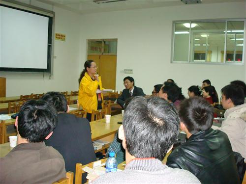 12月11日19时30分,1号教学楼204教室,评估专家杜明娥教授、王德胜教授对抽取的来自文学与新闻传播学院和数学与信息科学学院的3名学生进行了师范生教学技能测试。学生在中学课本中自己确定课堂内容进行15分钟的讲授,其间必须利用多媒体。每位学生讲授结束,其指导老师和在座学生都要进行点评。