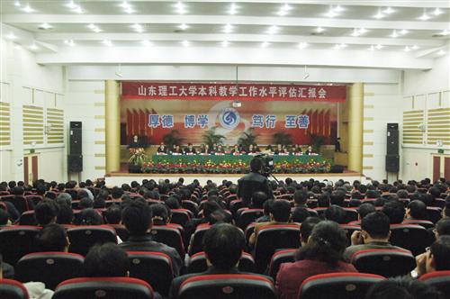 本站讯 12月11日上午8:10,我校本科教学工作水平评估汇报会在3号教学楼报告厅隆重举行。教育部高等教育司正司级巡视员、教育部高等教育教学评估中心主任刘凤泰,教育部赴山东理工大学本科教学工作水平评估专家组组长刘献君教授,专家组副组长罗锡文教授,专家组成员张明旭教授、张卫国教授、韩焱教授、杜明娥教授、王德胜教授、阎开印教授、易荣华教授、许晓革教授、孙振国教授,专家组秘书冯婉玲副研究员,专家组秘书孙颖,教育部高等教育教学评估中心专业与专项评估处处长周爱军,山东省人民政府副秘书长刘俭朴,山东省教育厅副厅长宋承祥,淄博市人民政府副市长段立武,山东省教育厅高教处副处长孟令君出席。校领导都光珍、姚福生、张宗新、张新义、贺连春、张元利、王学真、谭秀森、杜瑞成、张宇声、姚德以及我校教授、副处级以上干部、各教学单位教学科长、系(教研室)主任,离退休老同志代表以及学生代表470余人出席会议。