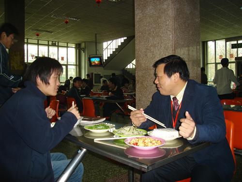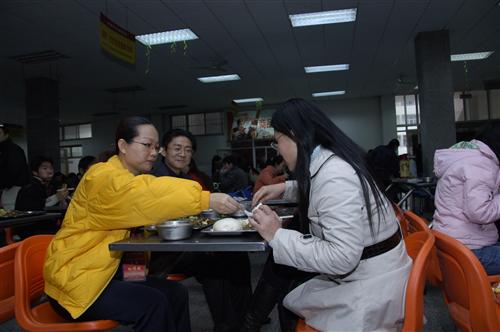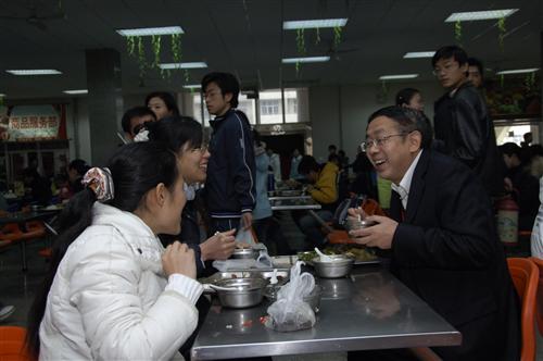 本站讯 12月12日中午,教育部本科教学工作水平评估专家组组长刘献君教授,专家组副组长罗锡文教授,专家组成员张明旭教授、张卫国教授、韩焱教授、杜明娥教授、王德胜教授、阎开印教授、易荣华教授认真考察了我校学生食堂,并与广大同学共进午餐。校领导都光珍、张宗新、张新义、贺连春、王学真、谭秀森、杜瑞成、张宇声、姚德陪同参加。