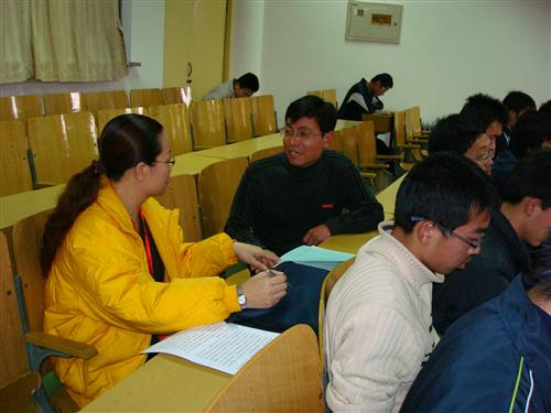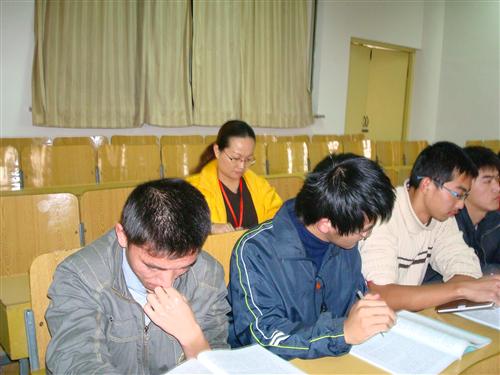 本站讯 12月12日下午,教育部本科教学工作水平评估专家组成员杜明娥教授来到3-103教室,听取了巩曰国老师的《中国传统文化与人生修养》,并与巩老师亲切交谈。
