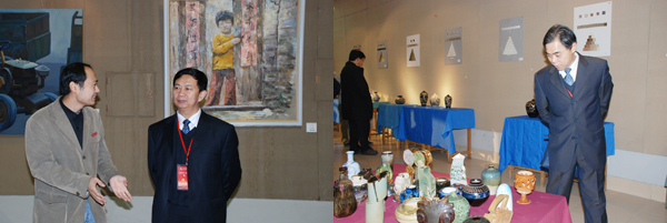 专家组成员张明旭教授、韩焱教授、易荣华教授在副校长谭秀森陪同下到美术学院走访