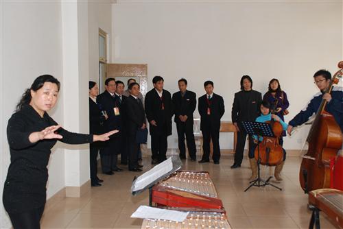 专家组成员张明旭教授、韩焱教授、易荣华教授在副校长谭秀森陪同下到音乐学院走访