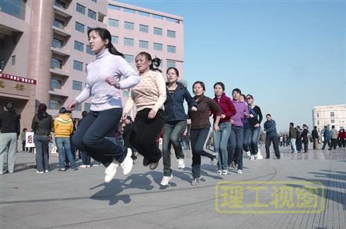 本站讯 为纪念“三八”国际劳动妇女节,校工会、妇委会组织了“庆三八迎奥运”跳绳比赛活动,比赛从3月6日下午开始,分团体跳大绳比赛和单人跳绳比赛,以分工会为单位组队进行比赛。