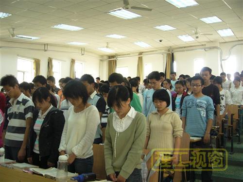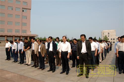 本站讯 5月19日14时28分,伴随着防空警报在校园上空的鸣响,山东理工大学三万余名师生员工分别在鸿远楼广场、教室、自习室、图书馆、实验室、体育场、路旁等不同地点共同为四川汶川大地震遇难同胞肃立默哀3分钟,深切表达大家对遇难同胞的沉痛哀悼。