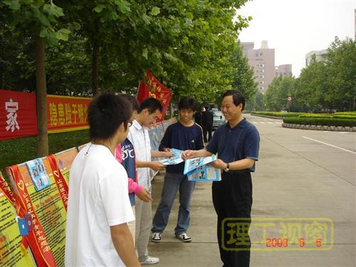 本站讯 每年的6月份是我国安全生产宣传月,中共山东省委高校工委、山东省教育厅今年又下发了《关于在全省教育系统开展“安全教育月”活动的通知》(鲁高工委发电[2008]23号)。为贯彻落实省高校工委、省教育厅的通知精神,6月6日,保卫处和学生工作处在农行大学分理处西侧联合举办了以“人人防火防灾,家家平安幸福”为主题的大型消防宣传活动。虽然雨时停时下,但20余名青年消防志愿者身披授带,坚持不断地给过往师生讲解消防知识,发放消防宣传画,50块消防法律法规和典型火灾事故展板整齐地摆放在道路两侧,一幅幅惨不忍睹的火灾现场画面,震撼人心。 6日下午,校党委副书记、副校长张新义同志在仔细观看了每一块展板后,也加入了消防宣传的队伍,把一张张消防宣传画发到过往师生的手中,并叮嘱工作人员:“大火无情,消防工作责任重大,要加大消防宣传工作的力度,大力普及消防安全知识,增强师生员工的消防责任意识,做到防患于未然”。