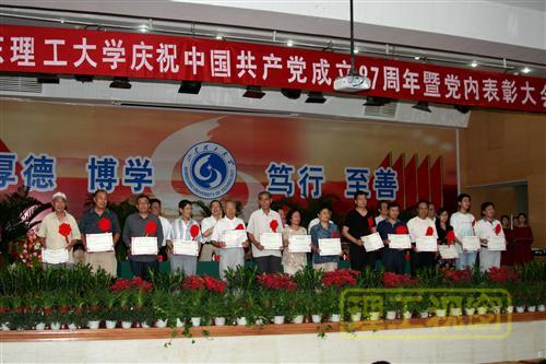 先进基层党组织代表、优秀共产党员和优秀党务工作者依次走上主席台,接受了校领导为其颁发的奖牌和荣誉证书。