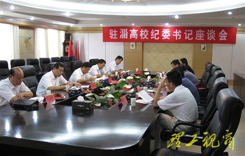 本站讯 9月3日下午,驻淄高校纪委书记座谈会在我校召开。淄博职业学院、淄博技术学院、淄博师范高等专科学校、山东水利技术学院及我校纪委书记参加了会议。会议由省委高校工委纪工委处长康宏岩主持,学校党委常委、纪委书记张宇声,纪委副书记段开祥、徐兴田出席会议。