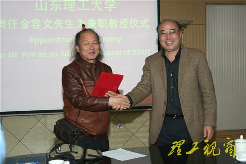 杜瑞成代表学校聘任韩国国际传统陶艺协会会长、著名陶艺大师金容文先生为我校兼职教授。