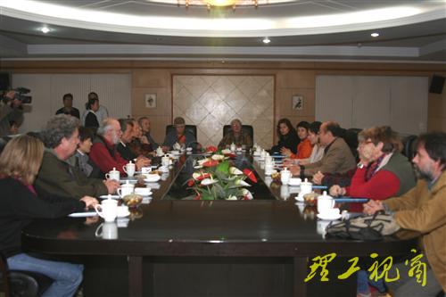 本站讯 10月6日下午,参加中国(淄博)国际陶瓷艺术研讨会的美国、韩国、阿根廷、法国、希腊、土耳其等6个国家的14位国际陶艺大师到我校考察交流。我校党委常委、副校长杜瑞成代表学校在鸿远楼九楼会议室热情接待了各位陶艺大师,对各位陶艺大师的到来表示热烈的欢迎。在欢迎仪式上,杜瑞成向客人们简要介绍了我校的发展概况,并与客人一起观看了《蓬勃发展中的山东理工大学》专题片。学校党委(校长)办公室、美术学院相关负责人一并出席了欢迎仪式。