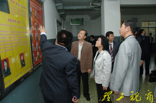 16:00,检查组在贺连春及相关部门负责人的陪同下现场考察了东校区10号学生公寓、西校区22号学生公寓和4号学生公寓,并饶有兴致地参观了我校大学生事务中心服务大厅与爱心超市,在4号学生公寓查阅了公寓管理资料,在杏园5楼会议室召开了学生代表座谈会。
