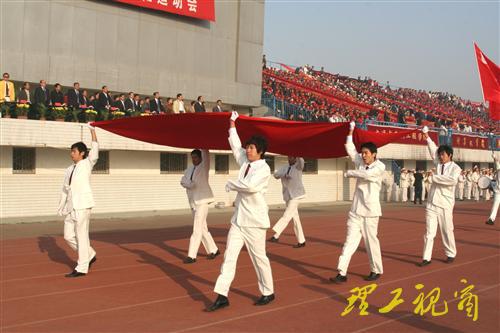 随着党委书记都光珍宣布山东理工大学2008年秋季田径运动会开幕,三十六响礼炮响彻云霄,运动场上彩旗飘扬,锣鼓喧天,全场欢声雷动。