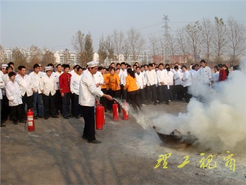 在李占印讲解完后员工们逐一进行了现场试用,熟悉灭火器操作,演练取得了良好效果。