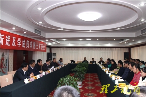 1月16日下午,新进及学成归来博士座谈会在杏园二楼会议室举行,校领导都光珍、张新义、张宗新、贺连春、张元利、谭秀森、张宇声、姚德以及学校有关部门负责人与新进及学成归来博士进行了座谈。党委书记都光珍主持了座谈会。