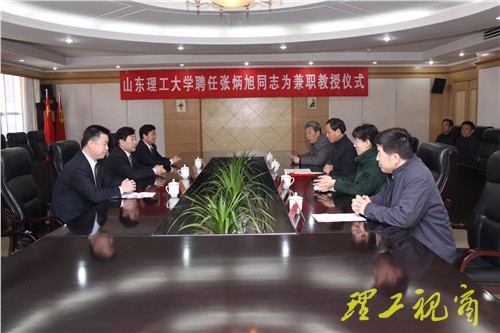 本站讯 3月26日上午,聘任我校校友、山东黄金集团青岛黄金公司董事长兼总经理张炳旭为兼职教授仪式在鸿远楼九楼会议室举行。党委副书记、校长张新义教授出席聘任仪式并为张炳旭颁发了聘书。我校人事处、资源与环境工程学院负责人,青岛黄金有限公司相关负责人参加了聘任仪式。