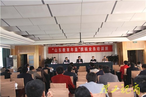 本站讯 为总结《山东教育年鉴》编撰工作经验,加强编者与撰稿人之间的沟通交流,进一步提高撰稿人的业务水平,4月24日至25日,省教育厅在我校举办《山东教育年鉴》撰稿业务培训班。教育厅副厅长陈光华,山东教育学院党委副书记、院长李清民,我校党委常委、纪委书记张宇声,省教育厅办公室副主任赵立辉,山东教育史志办公室主任、《山东教育年鉴》执行主编万克德等出席会议,来自全省17地市教育局、各高等院校的教育年鉴撰稿人90余人参加了业务培训。