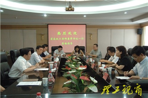 上午9时,在鸿远楼八楼接待室,邢善萍一行与我校党委书记都光珍、校长张新义、党委副书记张宗新、副校长张元利等就我校毕业生就业及安全稳定工作进行了交流。