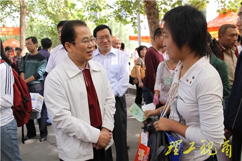 上午,校领导都光珍、张新义、谭秀森在相关部处负责人的陪同下来到迎新现场,看望新生及家长,考察迎新情况。
