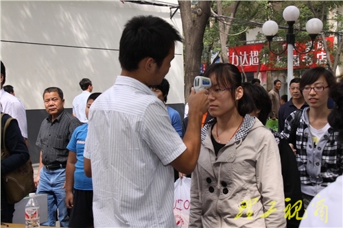 在“绿色通道”办理处,都光珍、张新义、谭秀森详细询问了学生家中的有关情况,并将“爱心大礼包”和“爱心购物券”送到贫困学生手中。