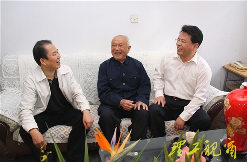 本站讯 在新中国成立60周年之际,9月23日上午,淄博市委书记、市人大常委会主任刘慧晏,市政协主席岳长志,市委副书记侯法生在我校党委书记都光珍的陪同下,看望了我校老红军秦师,为他送上了节日的问候和祝福。