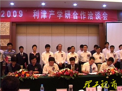 本站讯 9月20日上午,在利津县举办的“2009,利津产学研合作洽谈会”上,我校与利津县人民政府签署了“科技合作协议”,双方将在科技发展规划、高等教育及人才培养、高新技术合作和产品研发等方面建立长期稳定的合作关系。学校党委常委、副校长姚德,利津县委书记杨同柱、县长李延成、我校科技处负责人和相关学院的部分教授、利津县30余家企业负责人参加了洽谈会。