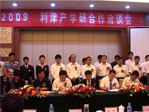 近日,在利津县举办的“2009,利津产学研合作洽谈会”上,山东理工大学与利津县人民政府签署了“科技合作协议”,双方将在科技发展规划、高等教育及人才培养、高新技术合作和产品研发等方面建立长期稳定的合作关系。山东理工大学党委常委、副校长姚德,利津县委书记杨同柱、县长李延成、学校科技处负责人和相关学院的部分教授、利津县30余家企业负责人参加了洽谈会。