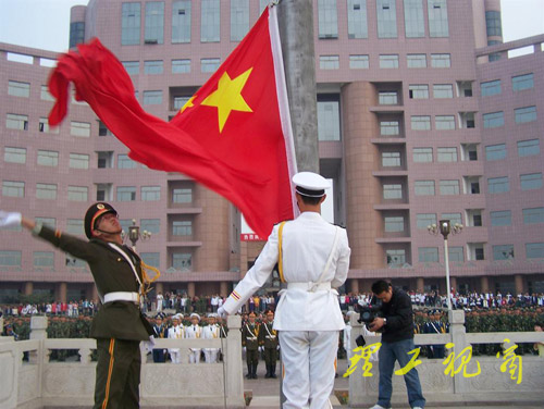 本站讯 又是一年金秋,中华儿女迎来了祖国母亲的60华诞。为加强学生的爱国主义教育,引导学生树立刻苦学习、报效祖国的信念,10月1日清晨,我校于鸿远楼前举行隆重的升旗仪式。学生工作处、校团委、国防教育学院、空军驻山东理工大学后备军官选拔培养办公室的相关领导和全校学生代表观看了升旗仪式。我校国防生担任升旗仪仗队。