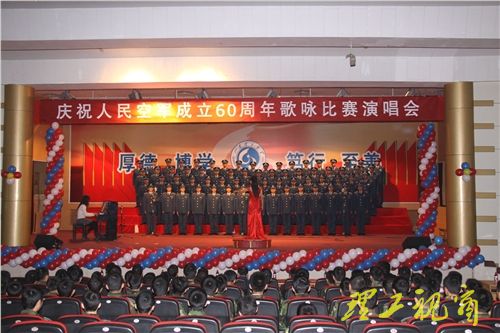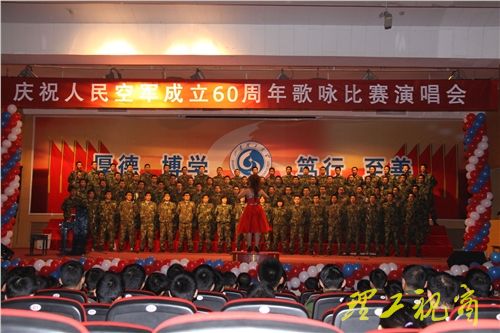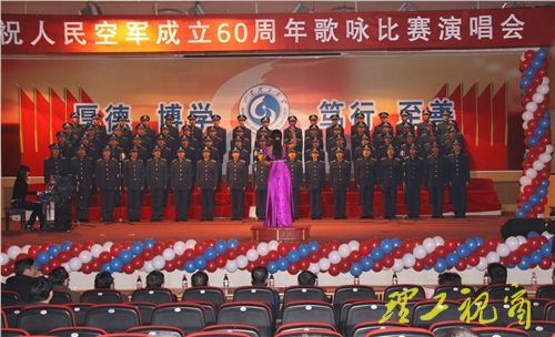 演唱会在歌伴舞《欢聚一堂》的精彩表演中拉开帷幕。“水兵爱大海,骑兵爱草原,要问飞行员爱什么,我爱祖国的蓝天。”一曲《我爱祖国的蓝天》歌声激昂,唱出了国防生对人民空军的热爱,展现了国防生冲向时代浪尖,书写华美篇章的热情。06级一队演唱的《中国军魂》,仿佛再现了人民空军60年风雨、60年艰辛以及60年的累累硕果。战场无亚军,一切为打赢,07级二队的《一切为打赢》唱出了人民空军在战火中发展壮大的历史和人民空军争夺制天权的雄心壮志。08级代表队深情演唱的《天路》寓意人民空军历经艰难险阻,到如今发展壮大的艰辛历程。比赛过程中,大学生民乐团表演的器乐联奏《神话》,王菲同学表演的钢琴独奏《幻想即兴曲》,王甜雨同学演唱的《军营里飞来一只百灵鸟》,赢得了现场观众的阵阵掌声。