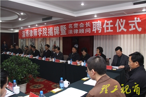 仪式上,副校长张元利被淄博市律师协会聘请为名誉会长;法律事务室主任马志忠被中共淄博市委政法委员会聘任为法律顾问。