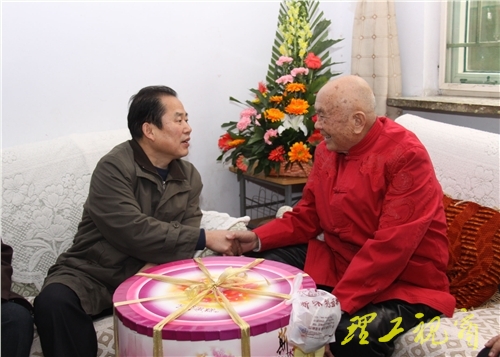 都光珍详细询问了秦老的身体和生活状况,并代表学校全体师生员工祝秦老生日快乐,健康长寿。91岁高龄的秦老身板硬朗、精神矍铄,他对学校领导的关心和师生们的祝福表示感谢,并祝愿学校各项事业取得更大成绩。