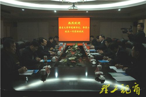 本站讯 12月23日,鲁东大学党委书记毕宪顺、校长李清山一行6人来我校考察交流。 党委书记都光珍,党委副书记张宗新,纪委书记衣玉琛,党委(校长)办公室、党委组织部、人事处等相关部门负责人与来访客人进行了座谈,并就相关问题作了深入交流。