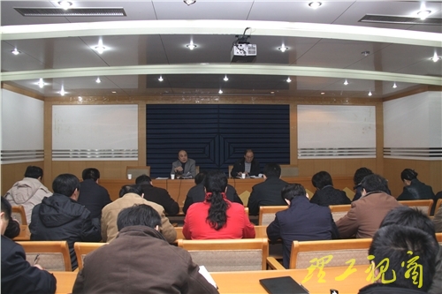 本站讯 12月29日下午,学校在鸿远楼一楼报告厅召开资产管理工作会议,党委常委、副校长杜瑞成出席并主持会议,资产管理处负责人及各部门、直属单位、学院分管资产工作负责人参加了会议。