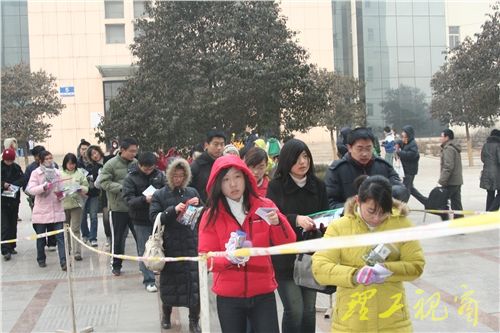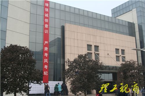 “淄博市考点”主要负责组织报考外校、在淄博市招办报名的考生,“山东理工大学考点”负责组织报考我校、在我校报名的考生。早上8点,各教学楼考场前已聚集了众多参加考试的同学,同学们冒着严寒,耐心等候入场。因当前正值季节性流感和甲型H1N1流感流行阶段,为应对甲流,确保考试平稳正常进行,学校制定了考试期间甲型H1N1流感防控工作方案,安排工作人员为考生测量体温,严防流感传播,保障考生的身体健康。今年应届毕业生考生数目有所增加,与当前的就业形势有较大关系。