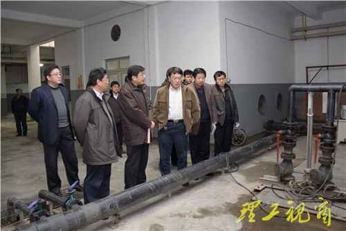 座谈会后,调研组实地考察了我校中水回收装置和射频卡智能洗浴用水管理系统。