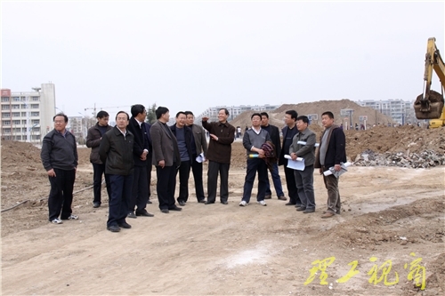 在施工现场,张新义一行认真查看了施工情况,仔细询问了稷下湖体、山体、广场及绿化等工程建设的总体情况,并不时查阅工程设计图纸,共同研究修订局部规划要求与施工方案,重点围绕局部景观设计、给排水系统、绿化植树、施工标准和技术要求等展开交流和讨论。