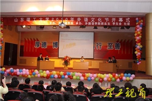 据悉,本届外语文化节活动将从4月中旬持续到5月中旬,其活动内容包括第四届山东理工大学英语辩论赛、山东理工大学大学生科技外语大赛、“名师面对面”外语专业讲座、“我心中的省运会”第九届双语演讲比赛、原声电影展播、“译”出风采笔译大赛、第一届日韩语趣味竞赛、外语文化风情街、海外文化讲座、第二届韩语歌曲大赛、“两会风云”主题征文、第二届中英双语营销大赛、赛会志愿者赛会英语演练培训、相约地球村-中外文化交流晚会。